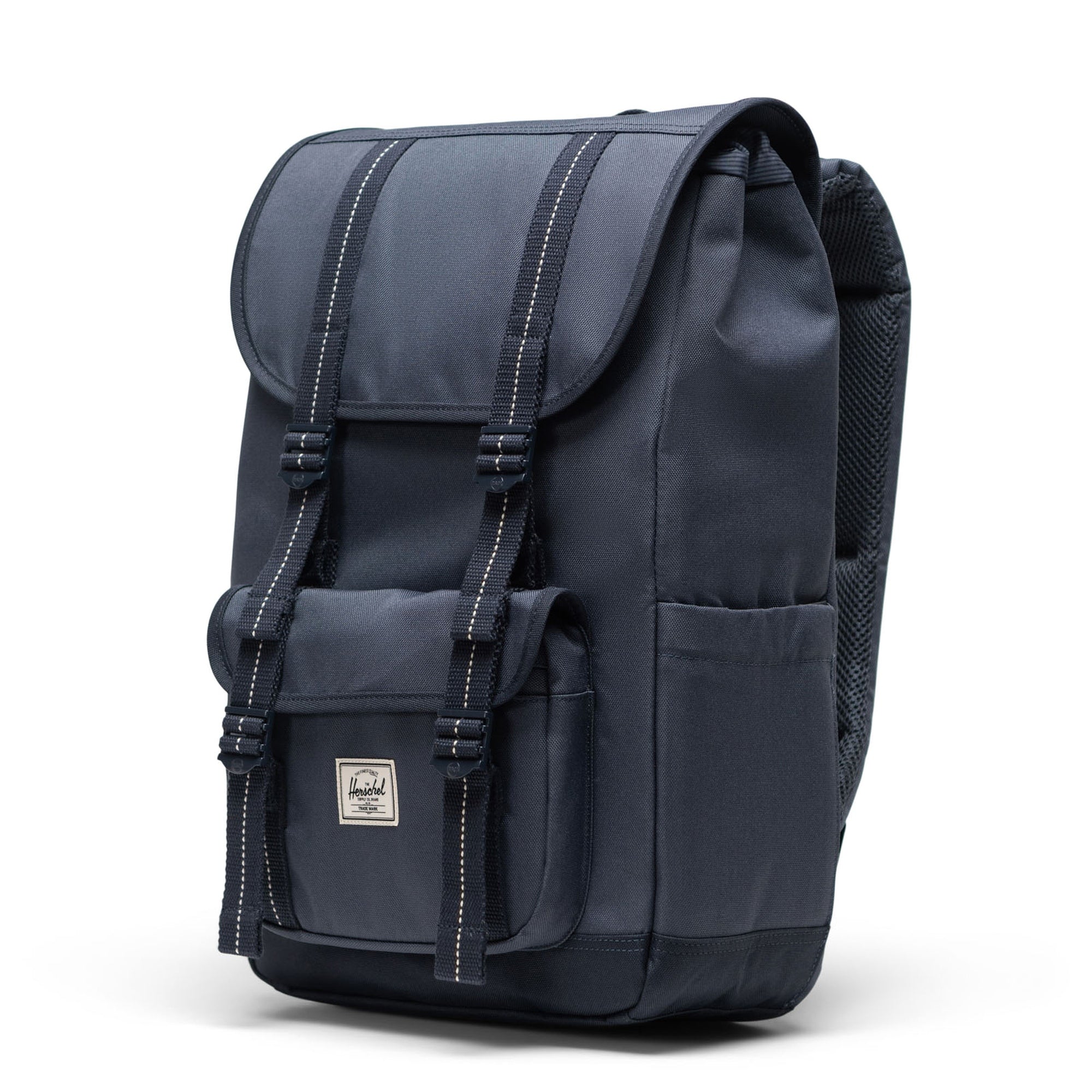 Descubre la mochila Herschel Little America Mid-Volume en el elegante color negro, que no solo tiene un aspecto estiloso, sino que también es ecológica. Fabricada con tejido EcoSystem™ 600D de alta calidad, que está hecho 100 % de botellas de agua recicladas, esta mochila combina sostenibilidad con diseño moderno.