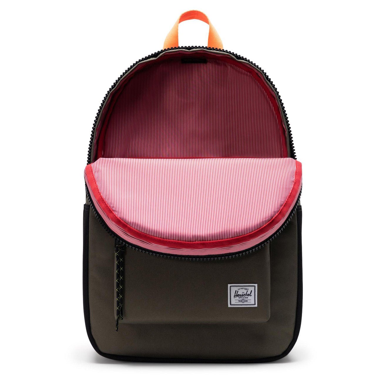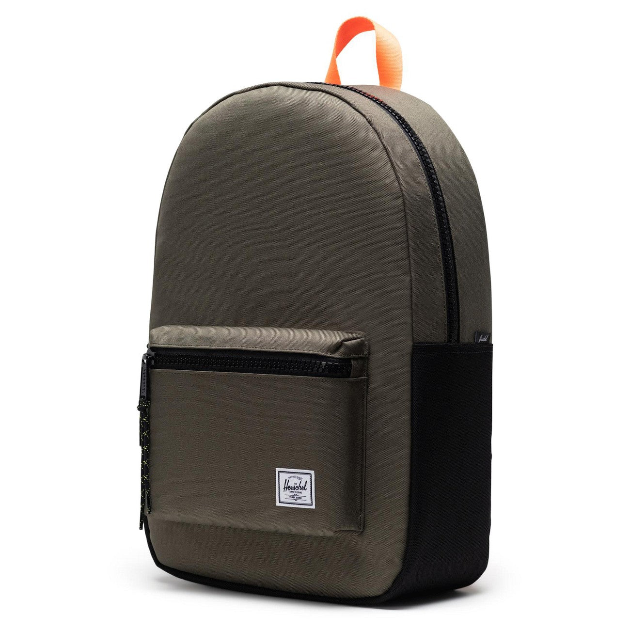 - El distintivo logo de Herschel en la parte delantera, que representa calidad y estilo.