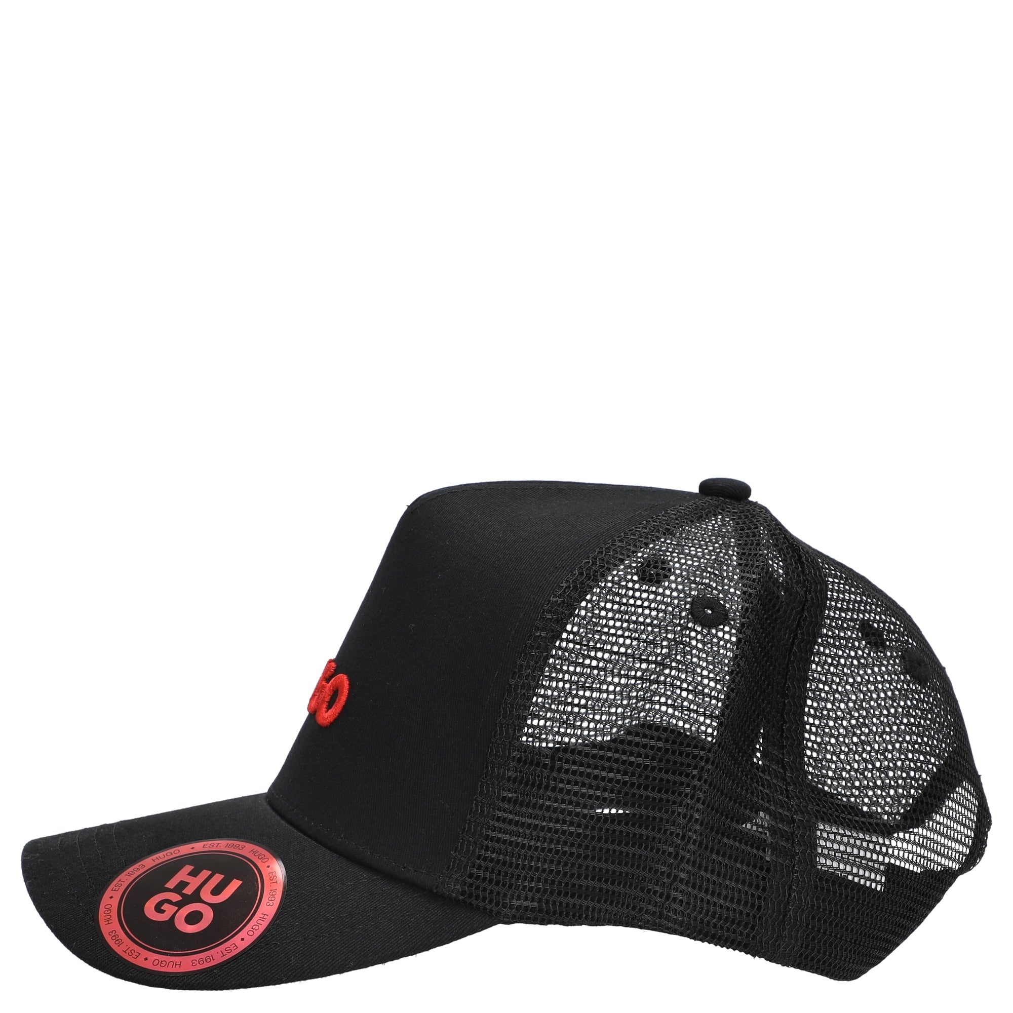 La gorra HUGO Men Marsel-Trucker destaca por su diseño moderno en el clásico estilo trucker, con una visera muy curvada y un llamativo bordado de logotipo en 3D.
