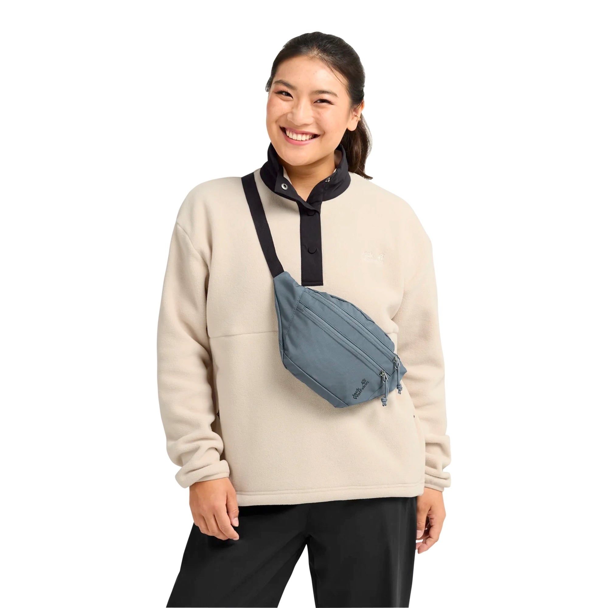 La riñonera Jack Wolfskin Konya en grey odessa es un accesorio elegante que combina perfectamente funcionalidad y estilo urbano. Esta compacta riñonera ha sido diseñada para mujeres que valoran los detalles de moda y la comodidad práctica al llevarla.