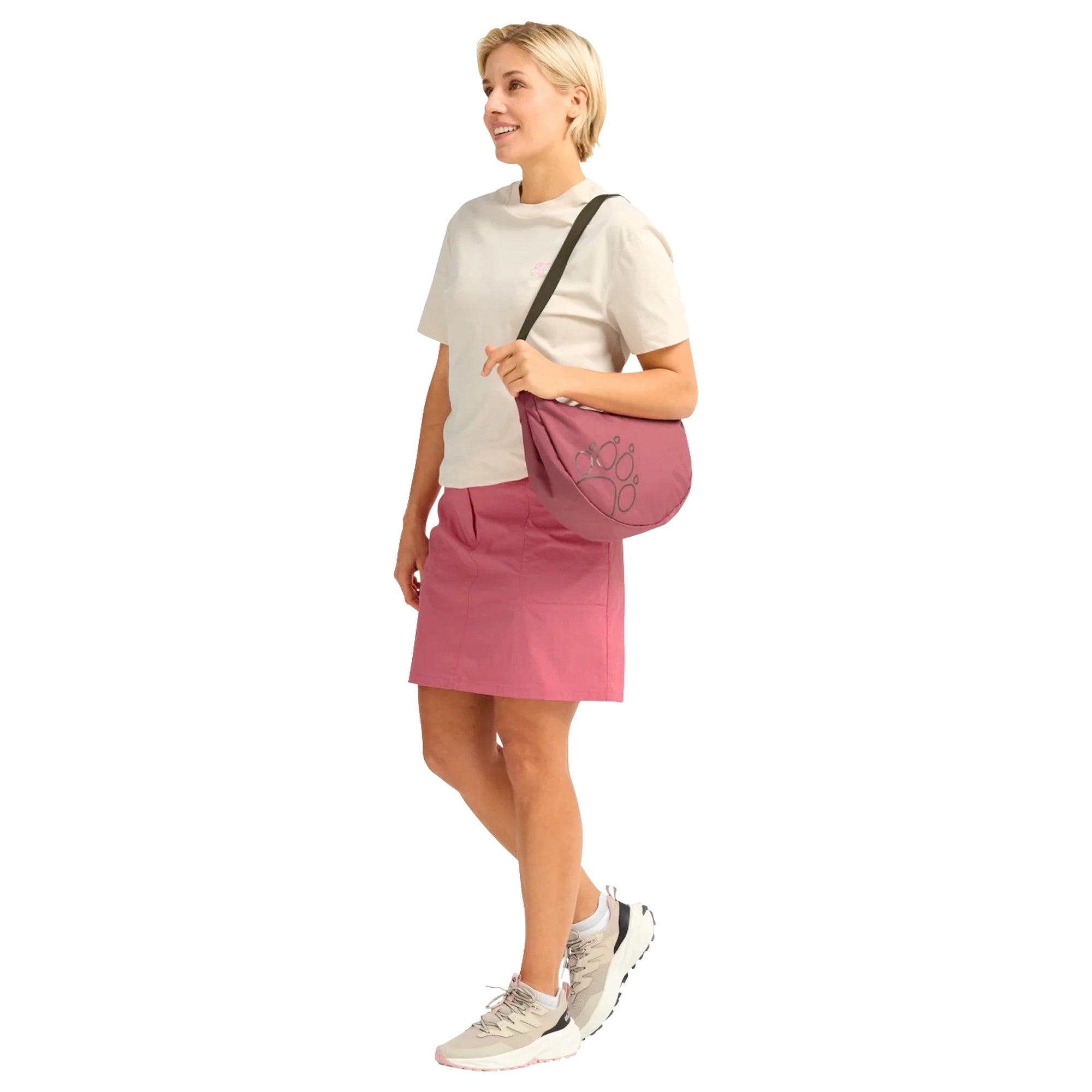 El bolso bandolera Zoya 8 de Jack Wolfskin en un elegante rosa frío es un acompañante estiloso para mujeres con sentido de la moda que valoran la funcionalidad y el diseño.