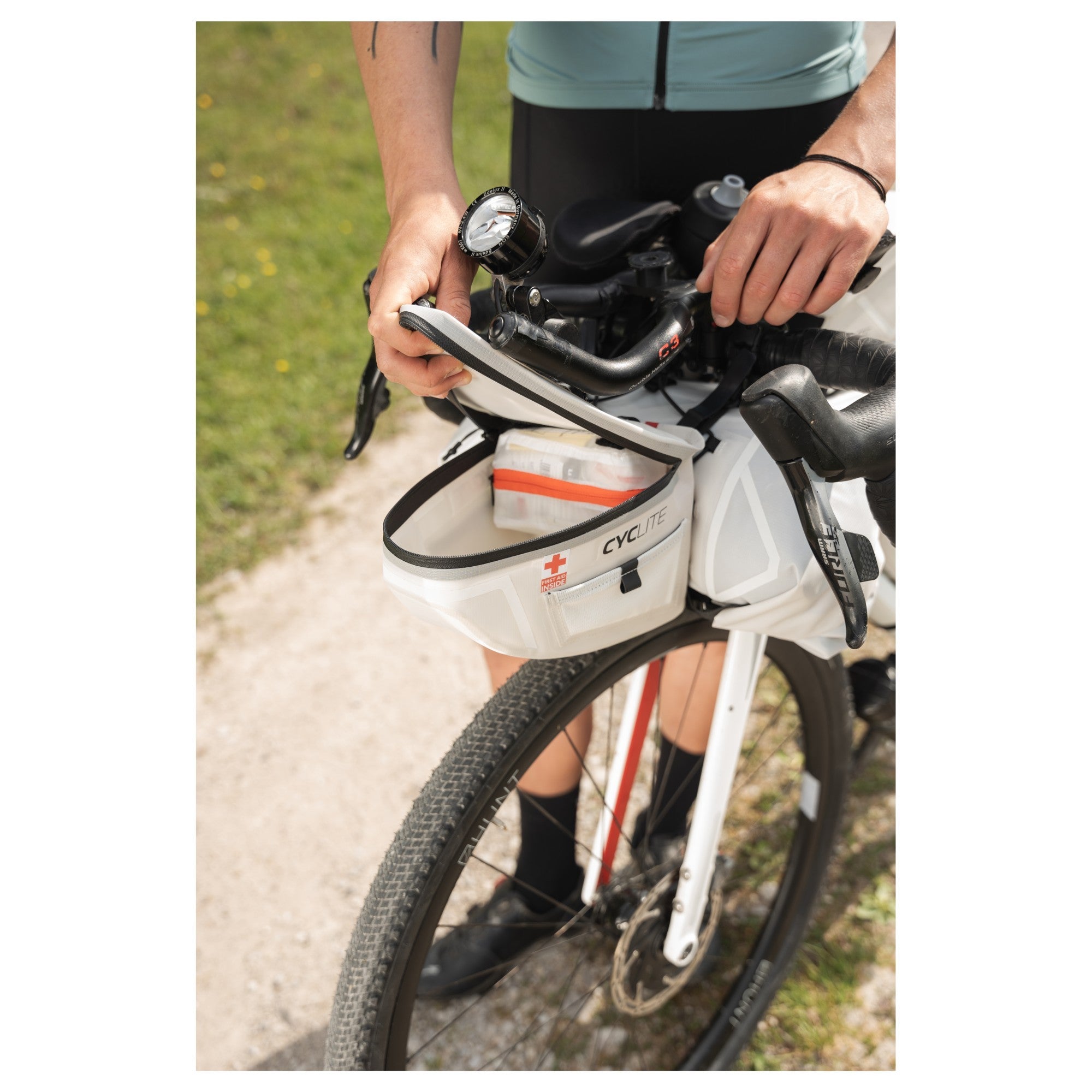 CYCLITE Botiquín de Primeros Auxilios - Erste-Hilfe-Set (color: blanco) es la solución ideal para todos aquellos que disfrutan de viajar en bicicleta. Este botiquín de primeros auxilios ultraligero ha sido diseñado especialmente para ciclistas ambiciosos y ofrece todo lo que necesita en caso de emergencia. Gracias a la cuidadosa selección en colaboración con paramédicos, cumple con todos los requisitos específicos para bicicletas y complementa perfectamente su equipo de bikepacking.