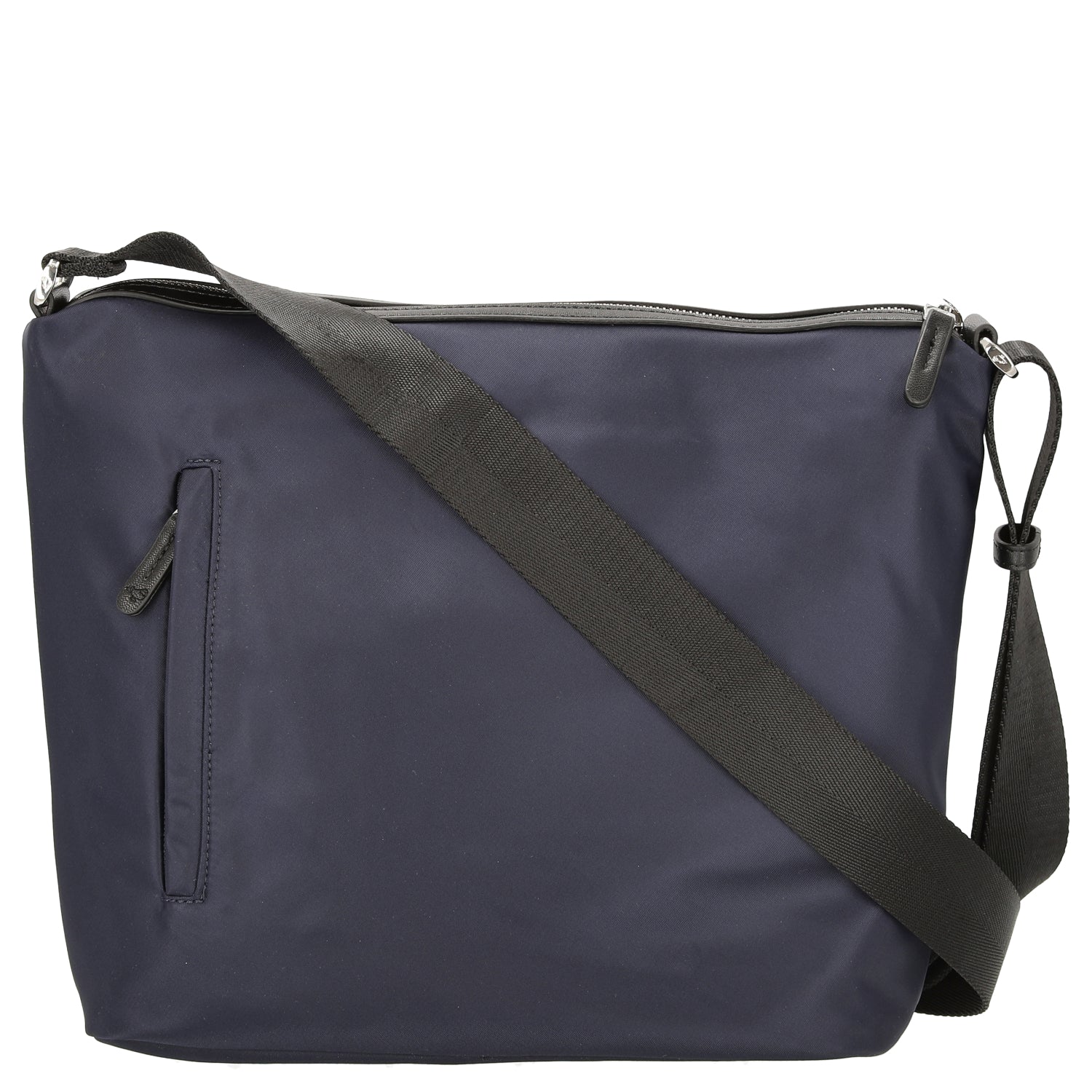 - Un bolsillo con cremallera vertical en la parte delantera, ideal para un acceso rápido a cosas importantes.