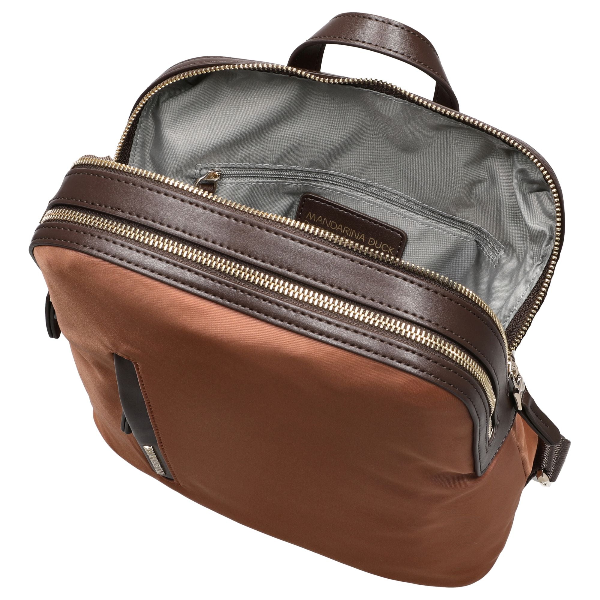 - Logo de Mandarina Duck: Integrado de manera visible, subraya el carácter exclusivo.