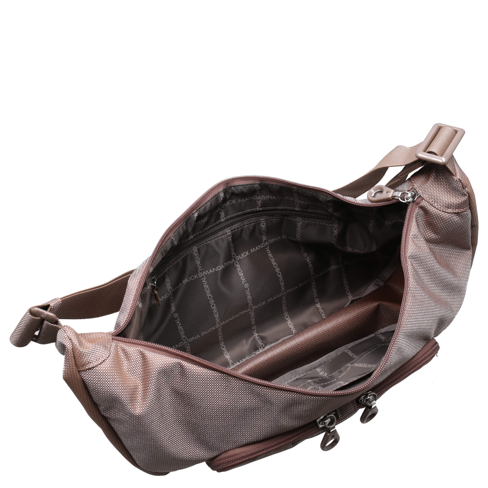 Descubre el bolso bandolera MD20 de Mandarina Duck en el elegante color taupe – un imprescindible para mujeres con estilo que valoran la funcionalidad y el diseño. Este bolso en tendencia de forma de plátano no solo es un accesorio de moda, sino también un compañero práctico para el día a día.
