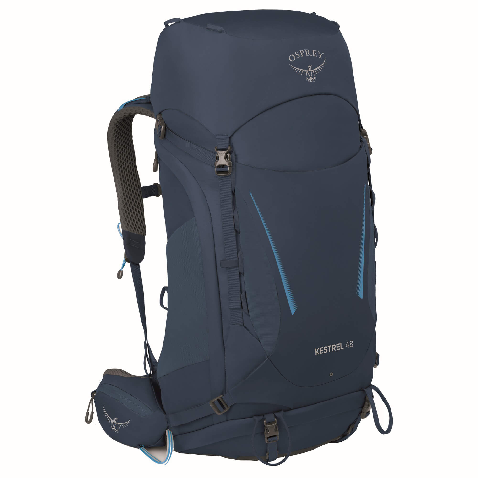 Osprey Kestrel 48 S/M - Mochila de trekking en Atlas Blue es el compañero perfecto para todos los amantes de la aventura que disfrutan explorando la naturaleza. Con un diseño bien pensado y numerosas funciones, esta mochila ofrece tanto comodidad como funcionalidad para excursiones de varios días.