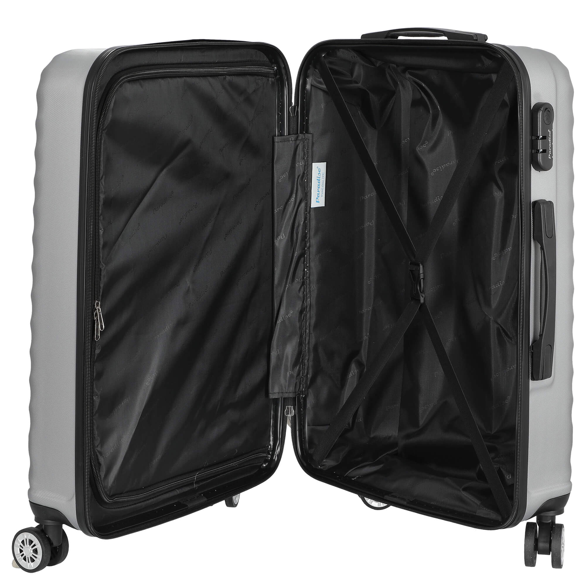 Descubra el trolley de 4 ruedas Paradise by CHECK.IN Kingston en elegante plata, que le encantará con su diseño estiloso y funciones prácticas. Este trolley de tamaño mediano de la colección Kingston no solo es un verdadero atractivo, sino también un compañero fiable para sus viajes.