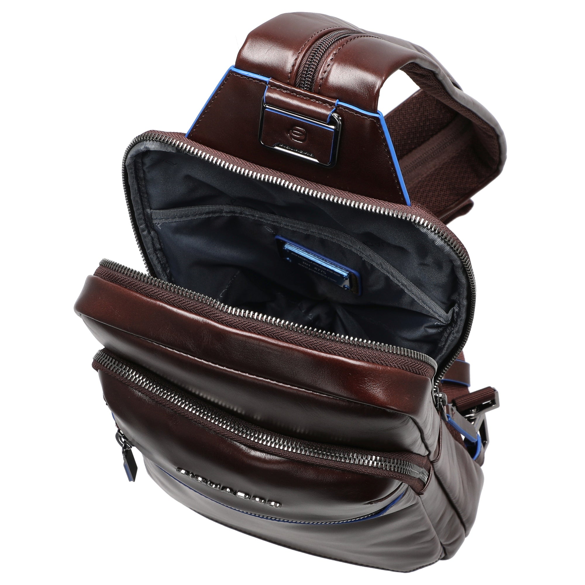 Diese mahoganyfarbene Umhängetasche von Piquadro ist der perfekte Begleiter für alle, die Wert auf Design, Komfort und Funktion legen.