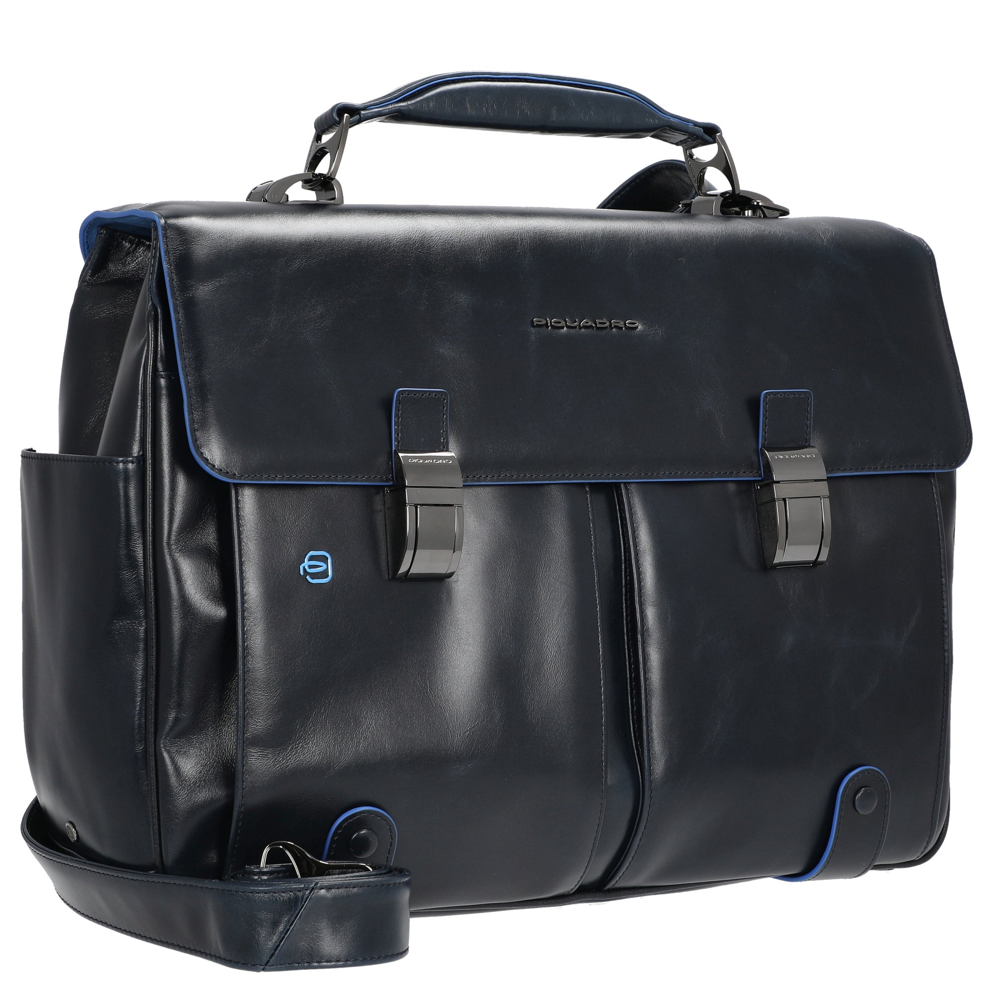 Diese blaue Aktentasche von Piquadro ist der perfekte Begleiter für Beruf und Businessreisen, der Funktionalität und Stil gekonnt vereint.