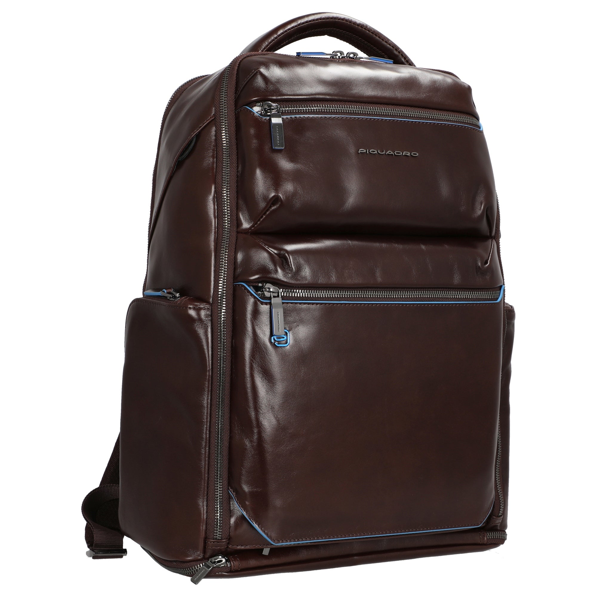 Ob im urbanen Alltag oder auf Reisen, dieser mahoganyfarbene Laptoprucksack von Piquadro verbindet Komfort, Stil und Funktionalität auf höchstem Niveau.
