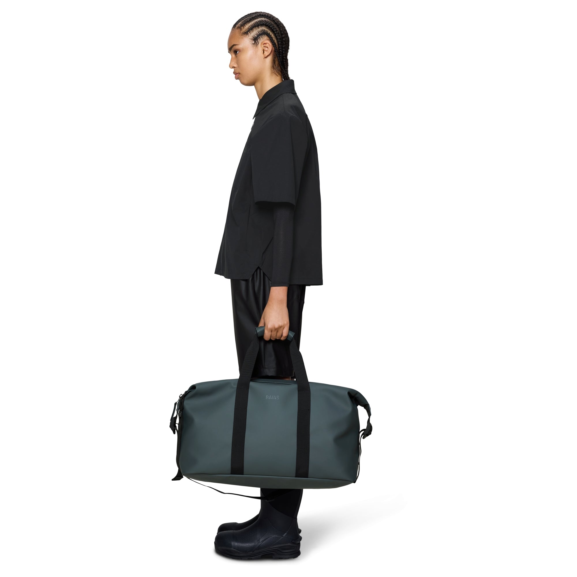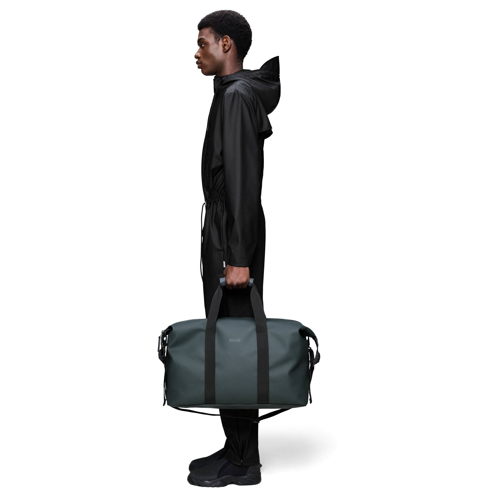 Descubra la elegante maleta de viaje Rains Hilo en el sofisticado color negro. Esta práctica bolsa de fin de semana combina un diseño moderno con funcionalidad y es el compañero ideal para escapadas cortas o viajes de fin de semana.