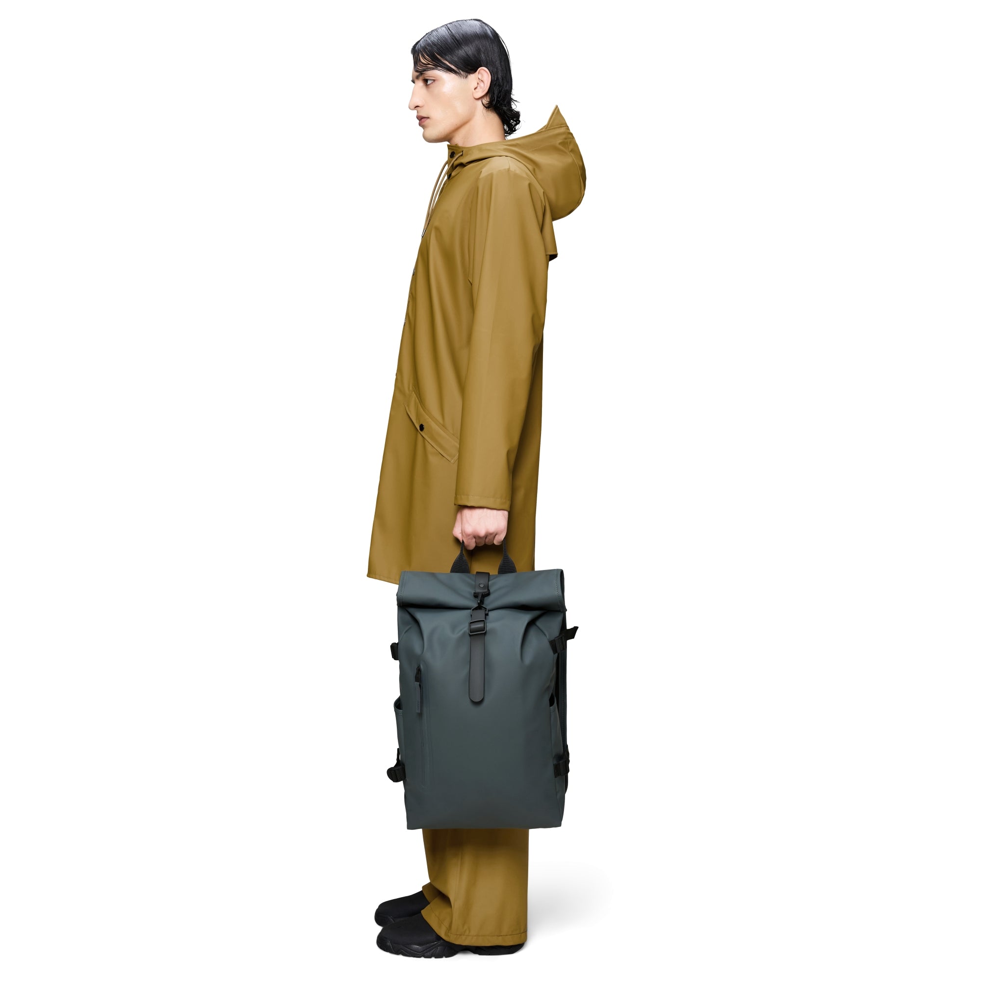 Descubra la mochila Rains Rolltop en color negro, un accesorio elegante y funcional para los viajeros modernos. Con un diseño pensado, esta mochila protege sus documentos de la lluvia ligera y ofrece al mismo tiempo suficiente espacio para todo lo que necesita en sus desplazamientos.