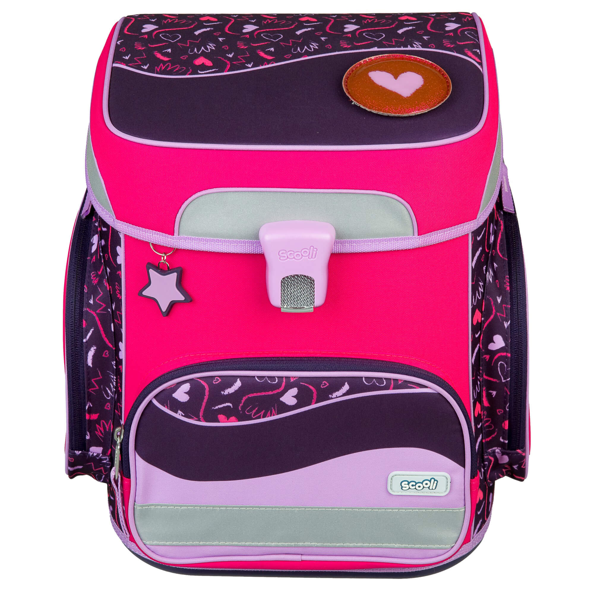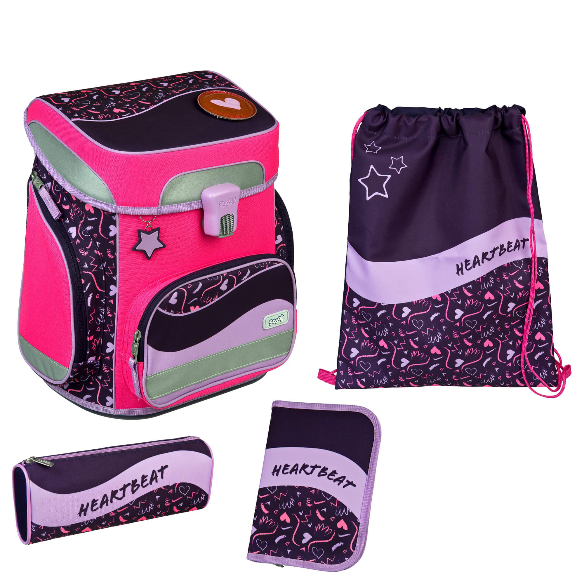Scooli EasyFit Glow DIN - Set de mochila escolar 5 piezas (Heartbeat)
