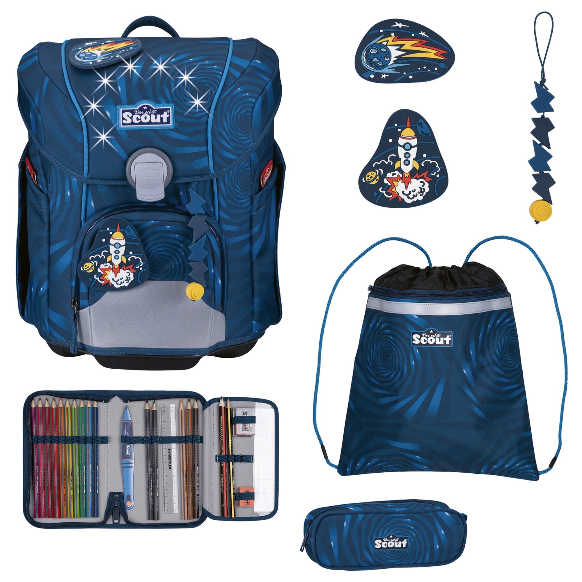 Scout Micro Exclusivo LED - Set de mochila escolar 4 piezas (Rocket Rider)