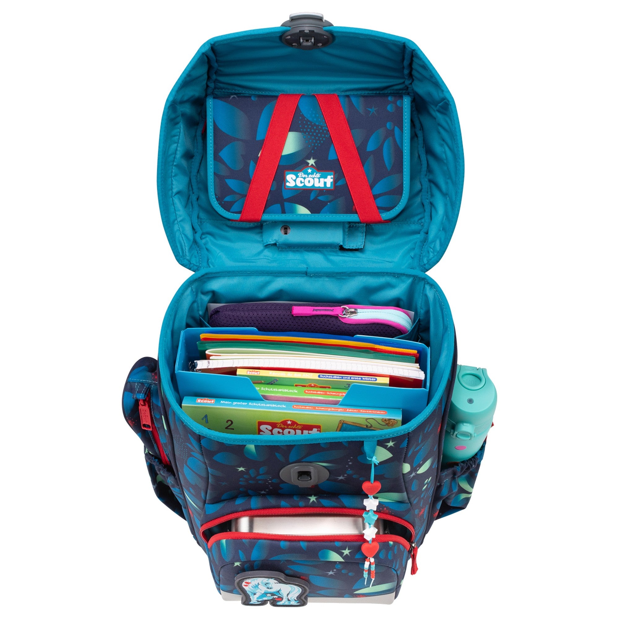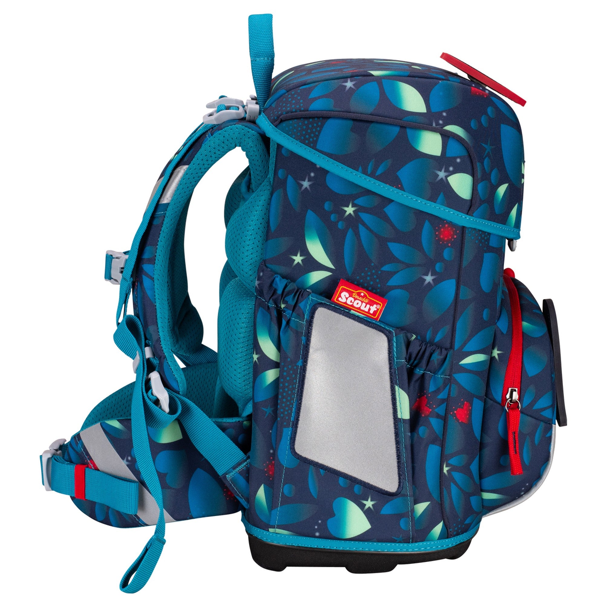 El cuerpo esbelto de la mochila impresiona por su robustez y, al mismo tiempo, ofrece mucho espacio de almacenamiento. El gran bolsillo frontal y los bolsillos laterales extensibles son ideales para guardar de forma segura todo lo importante. Gracias a la powerbank Scout integrada con indicador de carga y linterna práctica, los alumnos de primaria también son bien visibles en la oscuridad y están perfectamente equipados.