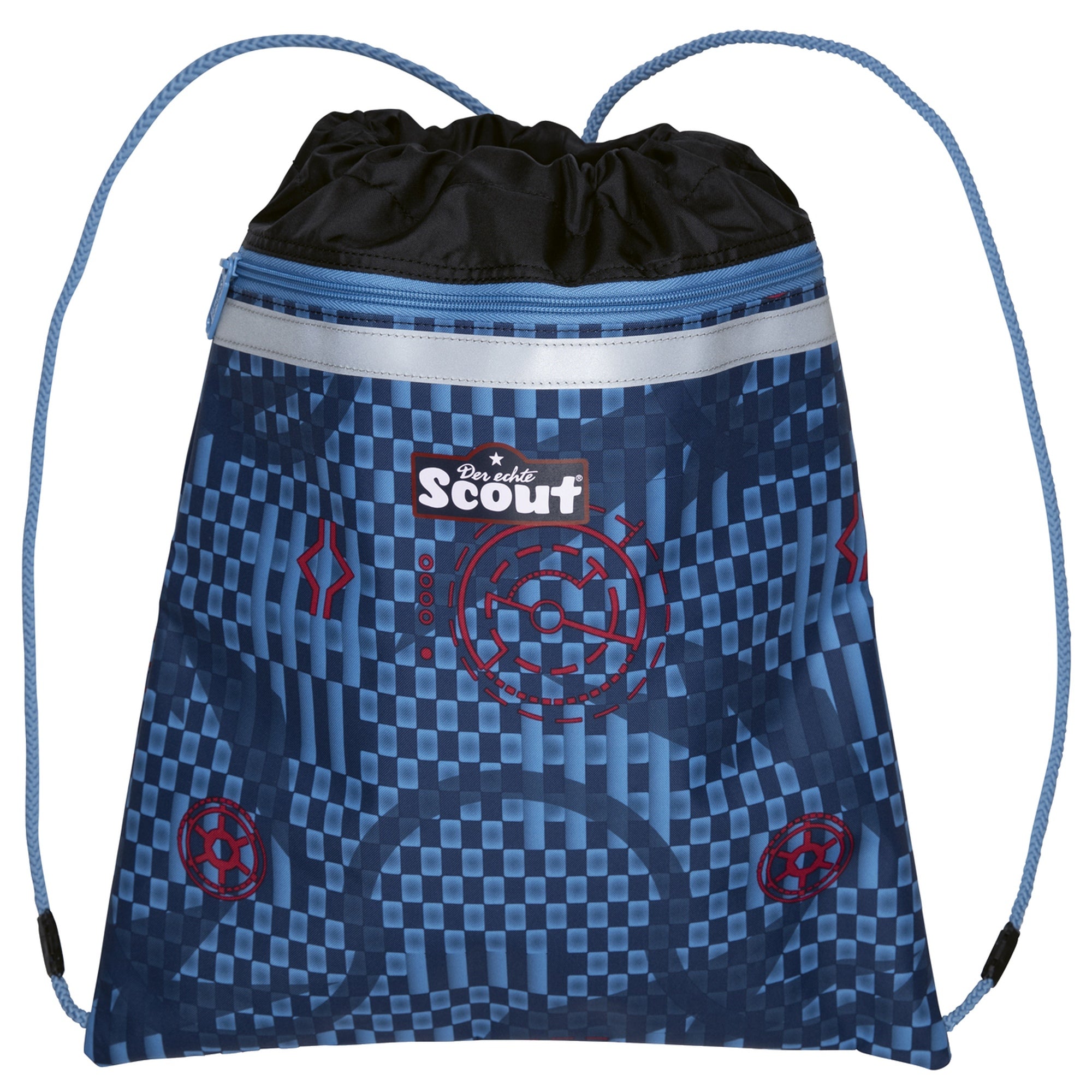 La mochila escolar Scout Neo Exklusiv Safety Light en el diseño Space Explorer acompaña a los niños de manera segura y cómoda durante el día escolar.