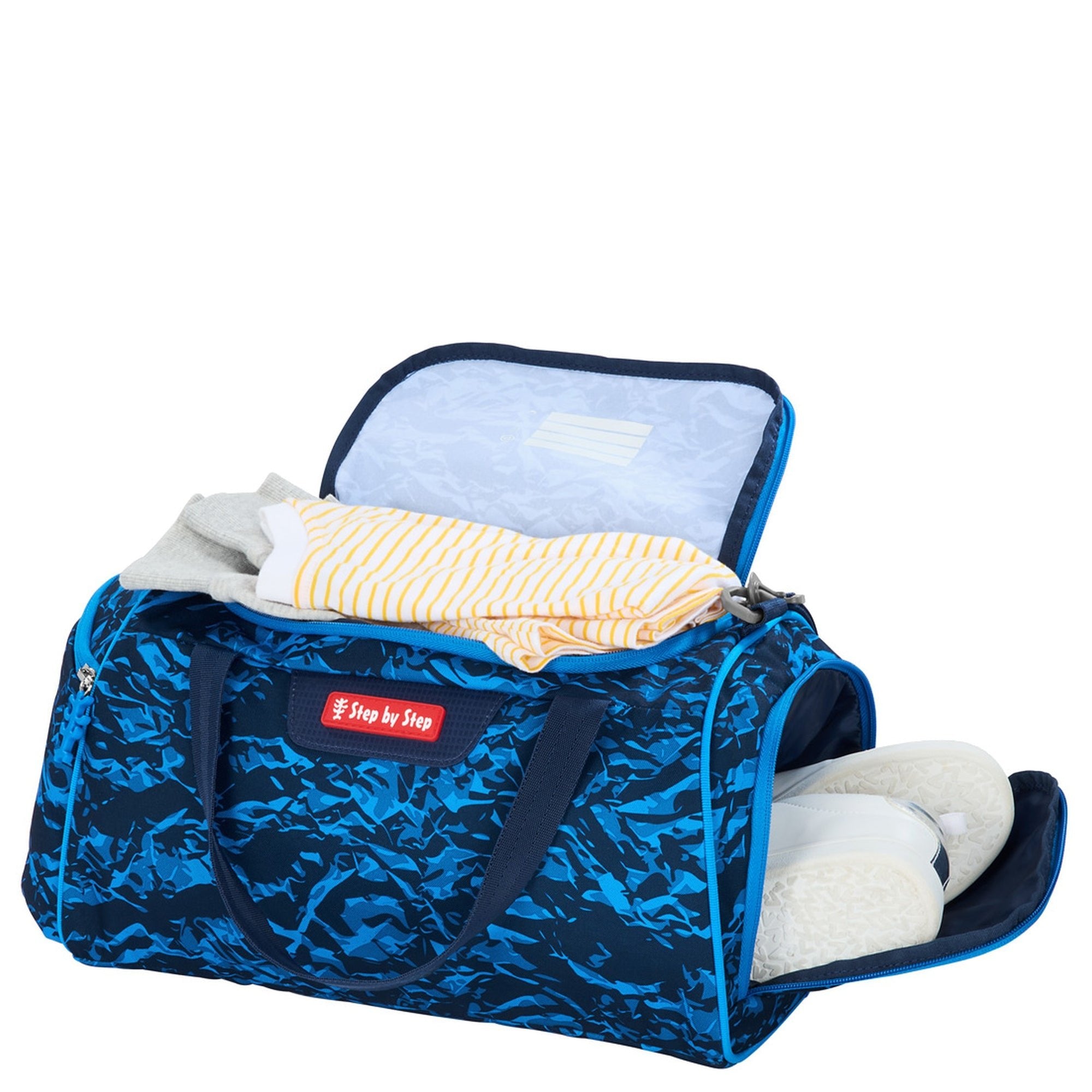 Con un volumen de 13 litros, la bolsa de deporte es el compañero perfecto para el deporte y el tiempo libre, que además se ajusta estilísticamente al diseño de la mochila escolar correspondiente.