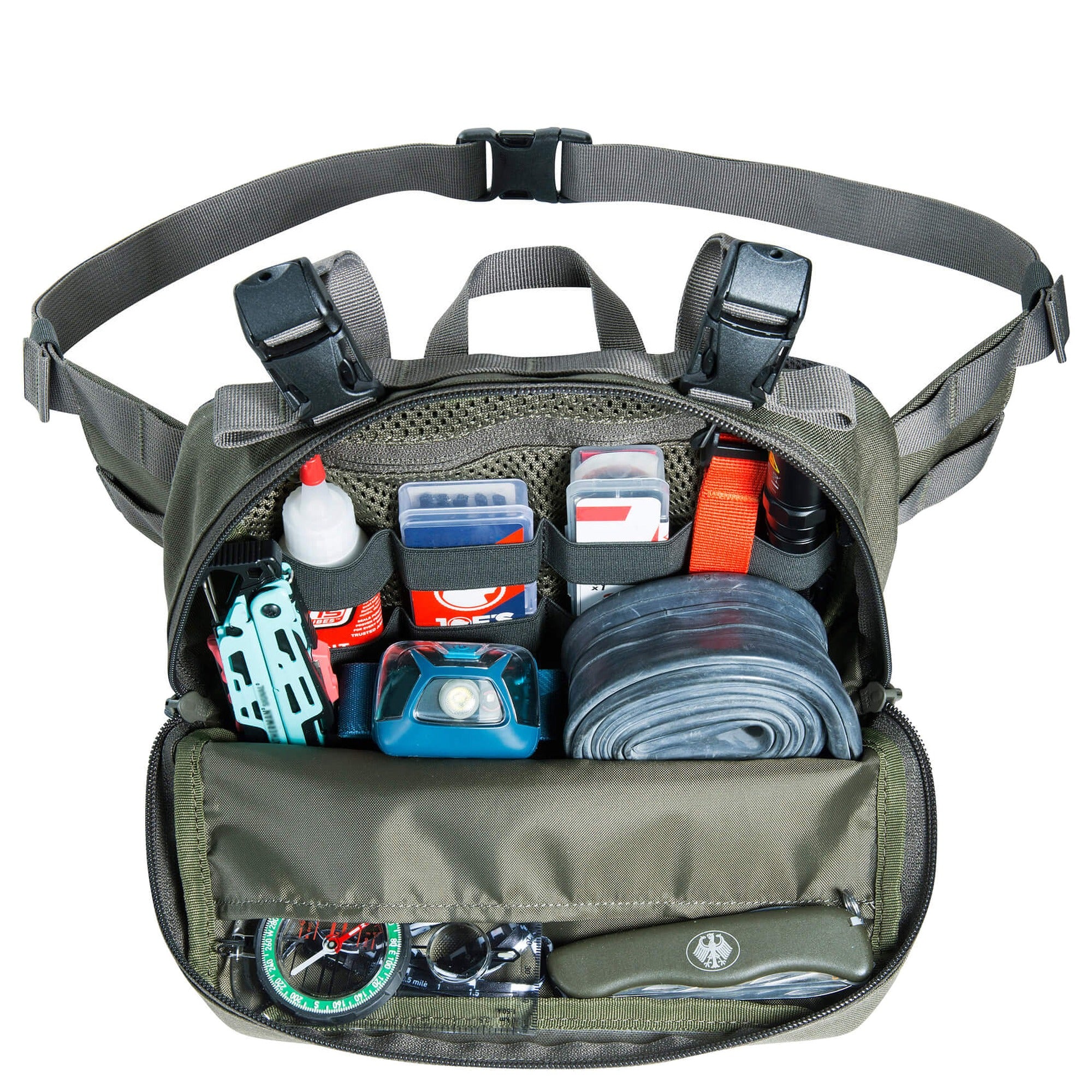 - Características adicionales – portallaves, lazos elásticos y superficie de velcro para parches personalizados