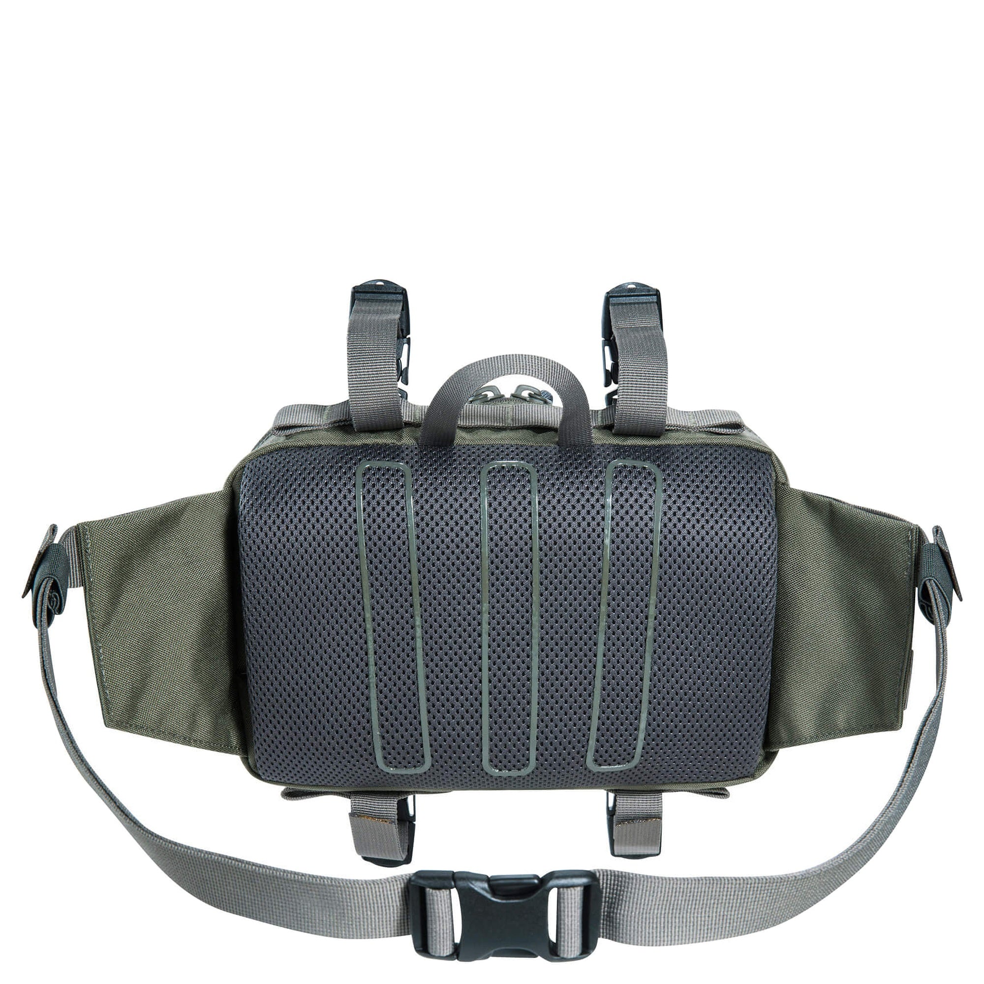 - Sistema de fijación modular – permite variantes flexibles de uso como bolsa de cintura o bandolera, así como una fijación segura en el manillar de la bicicleta