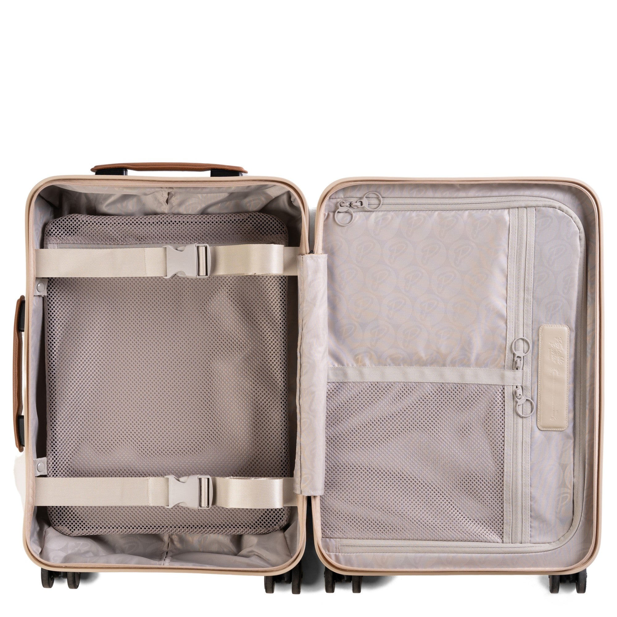 Descubra el The Portable Porter Company Carry On – un elegante trolley de cabina de 4 ruedas en el sofisticado color arena cálida. Esta maleta combina funcionalidad con un diseño atractivo y es el compañero perfecto para sus viajes.