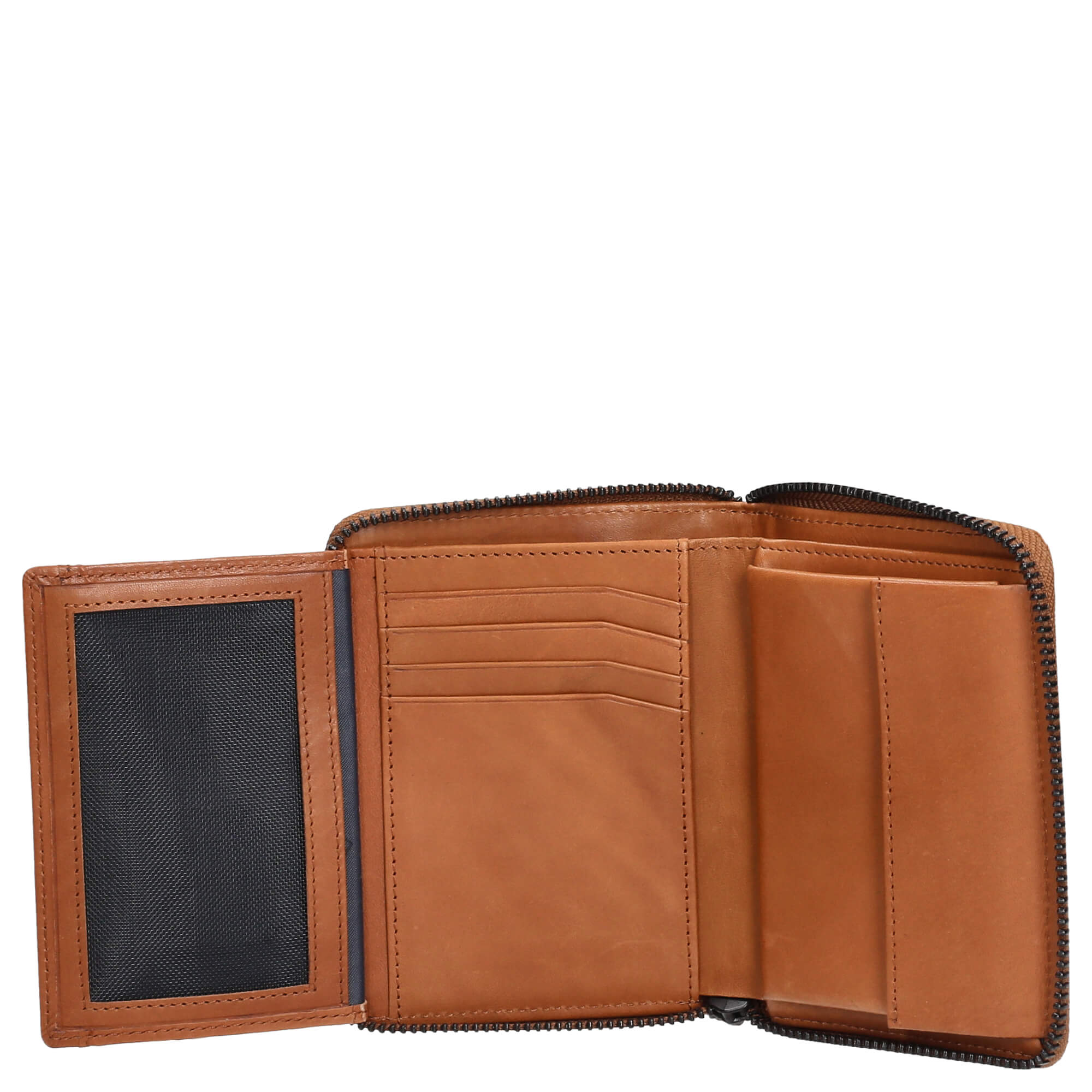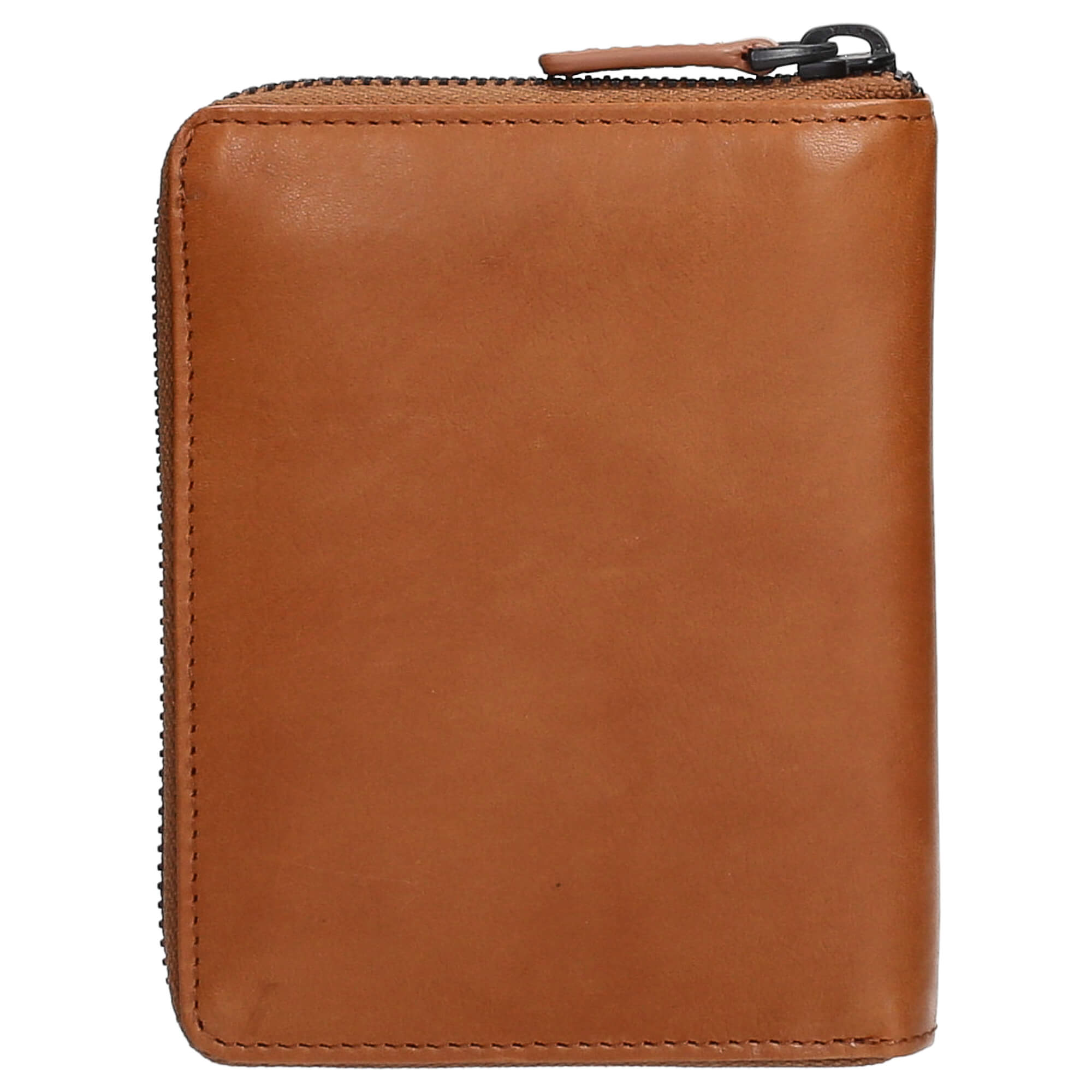 La cartera compacta con cremallera alrededor ofrece suficiente espacio para sus tarjetas y dinero en efectivo. Está fabricada con cuero premium de curtido parcialmente vegetal, que se siente agradable al tacto y aporta un aspecto noble.