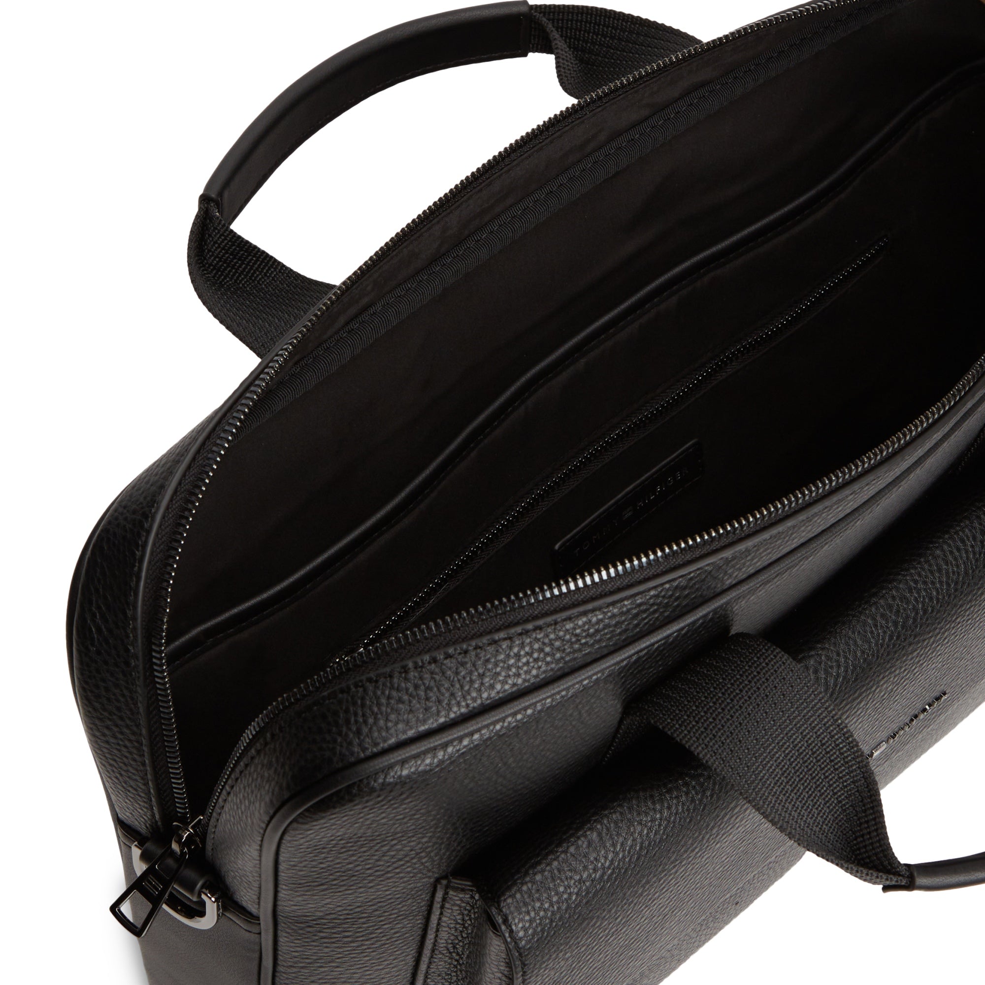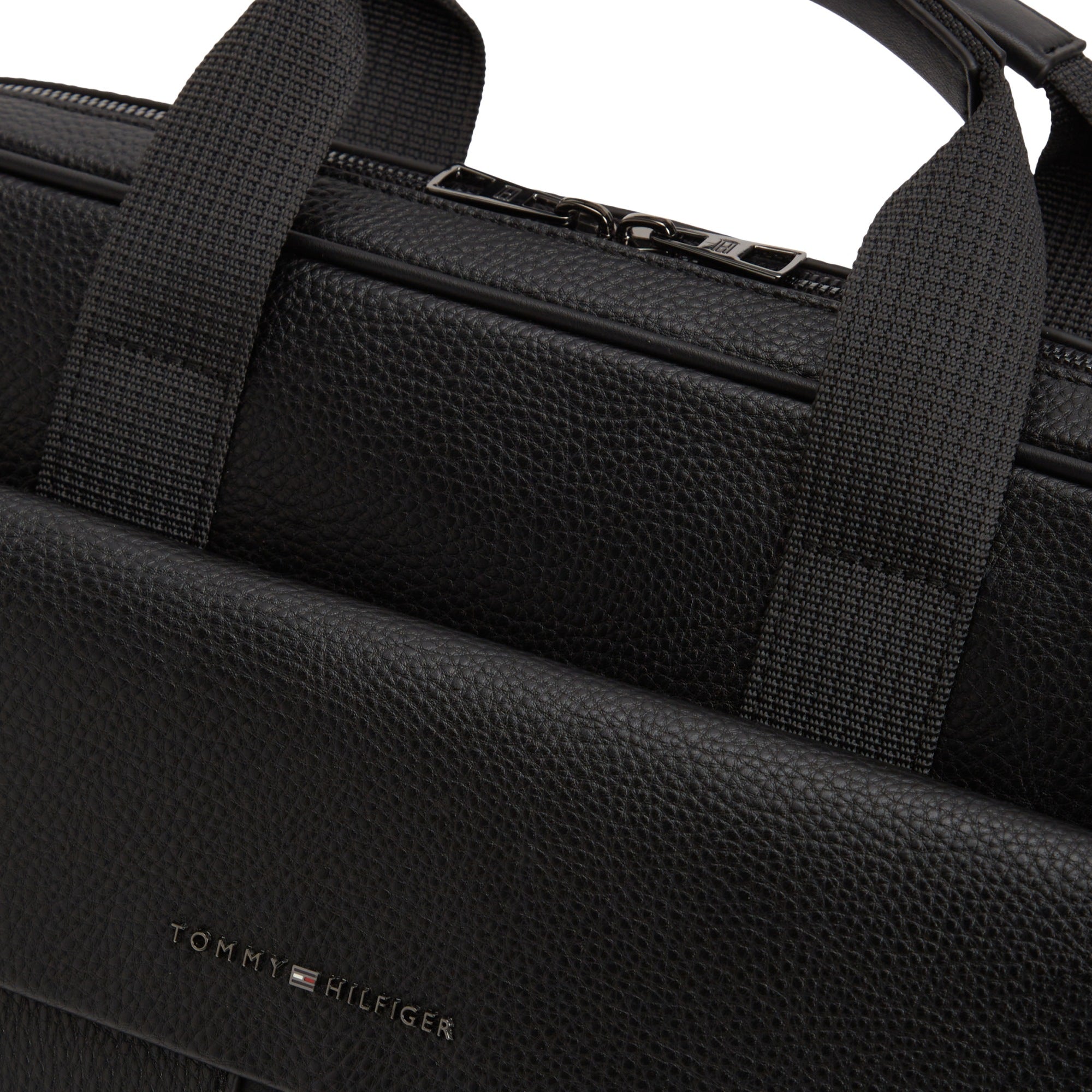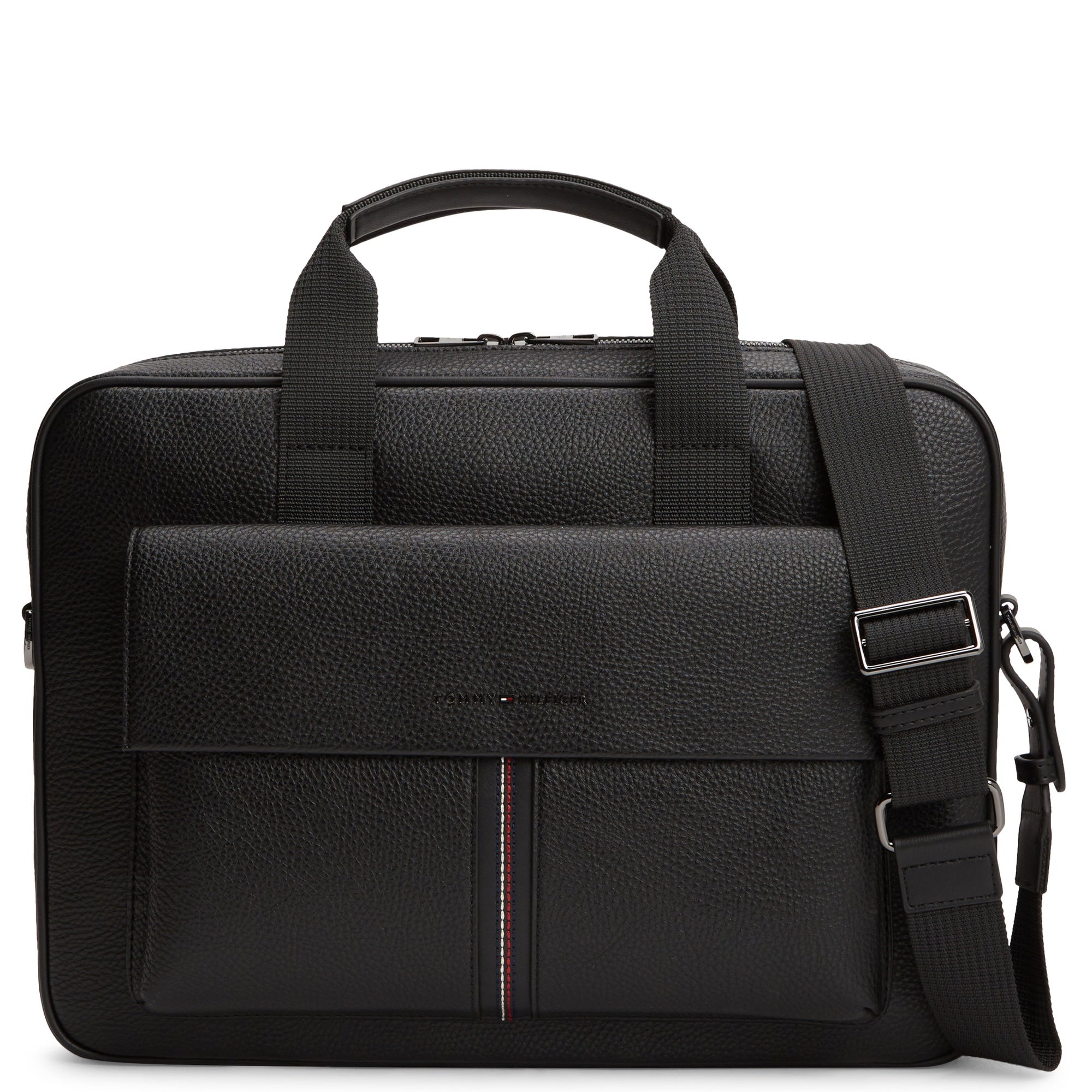 El maletín para portátil Tommy Hilfiger Central en clásico negro combina un material robusto y estructurado con un diseño funcional para el uso profesional en el día a día laboral.