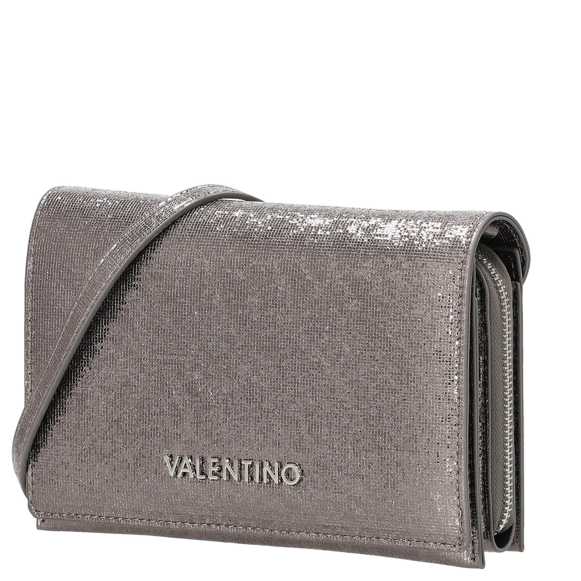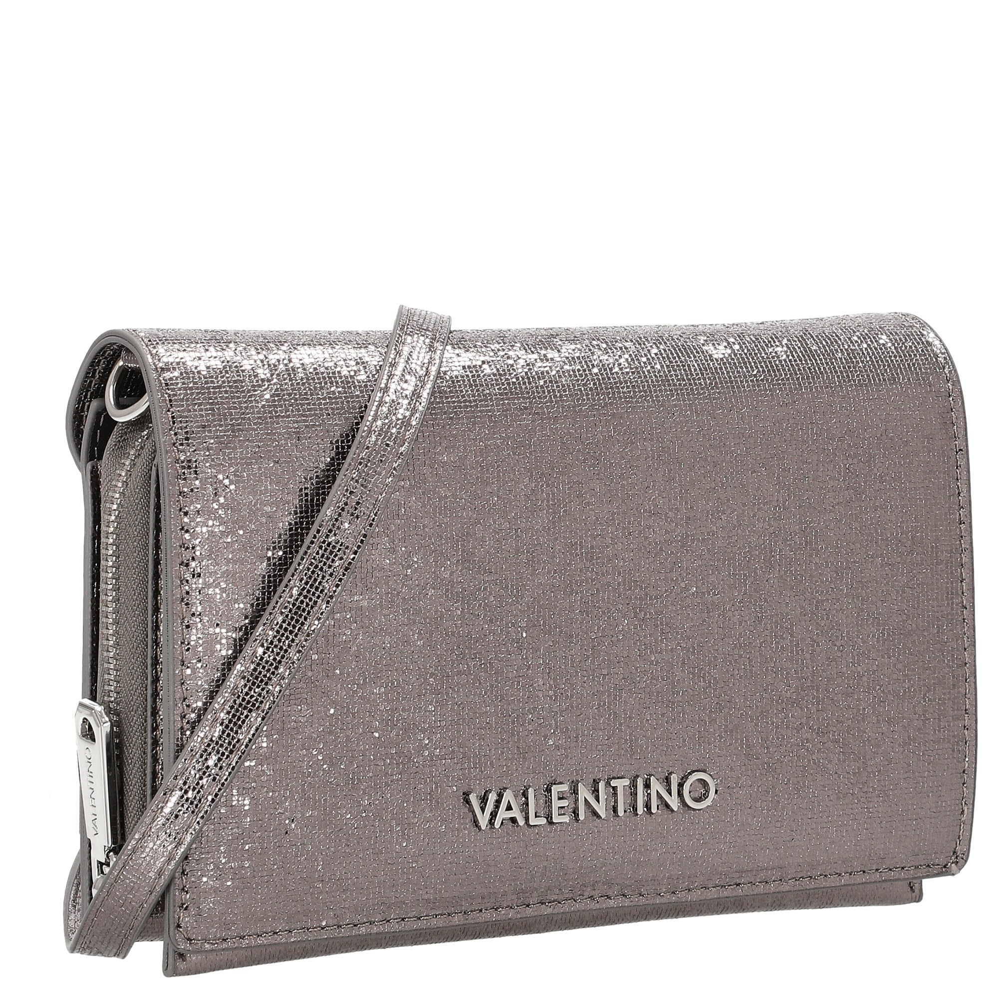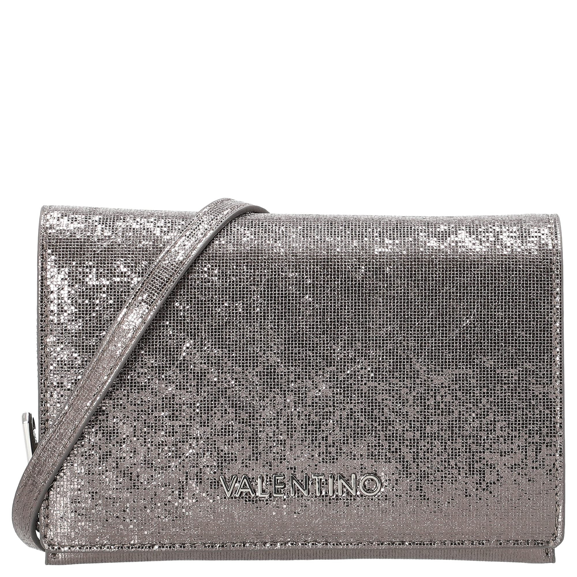 El bolso bandolera Valentino Bags Ember en elegante cannafucil aporta un brillo glamuroso a cualquier look. Su diseño brillante y metálico lo convierte en el compañero perfecto para ocasiones especiales y eventos nocturnos con estilo.
